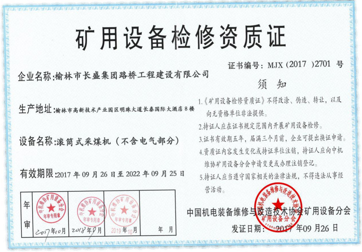 礦用設(shè)備檢修資質(zhì)