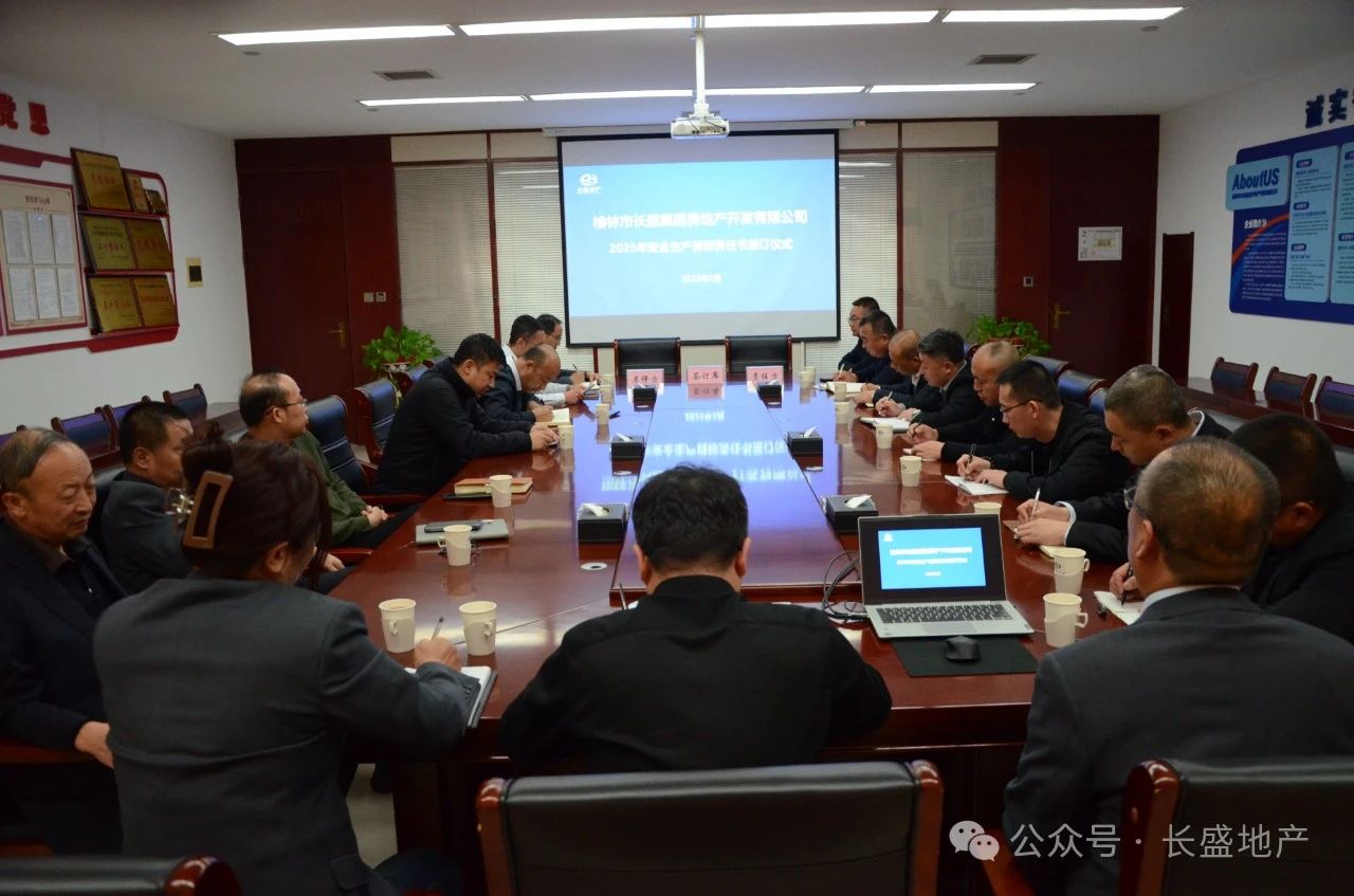為認真貫徹落實“安全第一、預防為主、綜合治理”的安全生產方針,全面壓實安全生產責任。3月27日,榆林市長盛集團房地產開發有限公司舉行2025年度安全生產目標責任書簽訂儀式。公司總經理徐遼飛、副總經理劉世斌、總工程師曹光軍、總經理助理楊斌,機關各部門負責人、項目負責人等相關人員參加儀式。