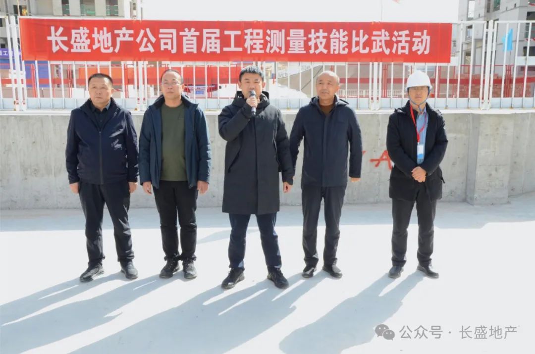 2025年2月26日,榆林市長盛集團房地產開發有限公司在翰林書院項目施工現場舉行首屆工程測量技能比武活動,吸引了來自公司榆林區域內各項目的12支參賽隊伍同臺競技。公司總經理徐遼飛、副總經理劉世斌、總工程師曹光軍等出席活動,公司總經理助理楊斌主持。
