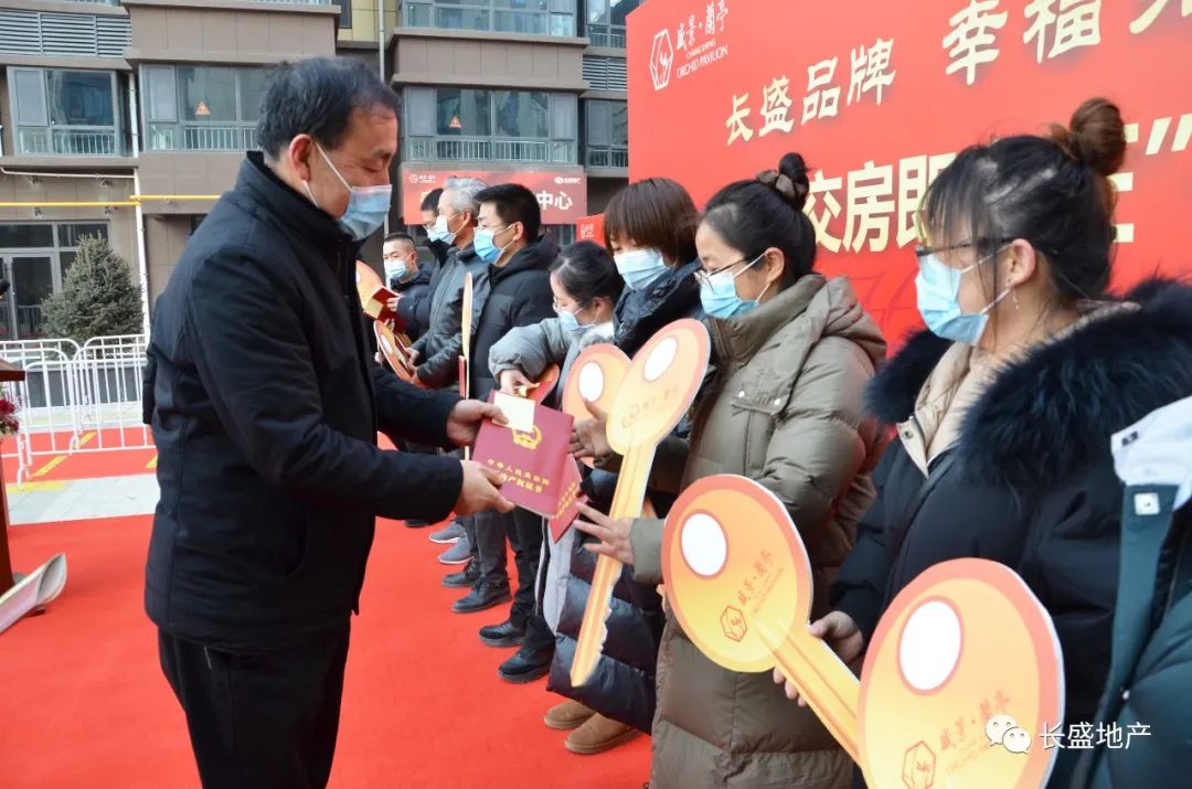 12月31日,榆林市長盛集團房地產開發有限公司在盛景蘭亭小區舉行“交房即交證”儀式。榆林市不動產登記中心主任李東堂,榆林市住房和城鄉建設局房地產市場管理科科長李瑞平,公司總經理徐遼飛、副總經理劉世斌,9名業主代表及榆林市住房和城鄉建設局榆林市不動產登記中心有關科室負責人參加儀式。