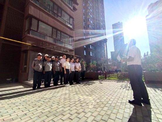 此次演練模擬了突發(fā)情況導(dǎo)致電梯故障,多名乘客被困,由1號樓3單元503業(yè)主文強、盛景雅苑物業(yè)服務(wù)中心綜合辦公室人員、客服人員、工程人員和安保人員聯(lián)合通力電梯維保公司人員在4號樓西梯進行。演練開始前,總指揮——項目經(jīng)理謝云云對本次演練進行了總體部署。