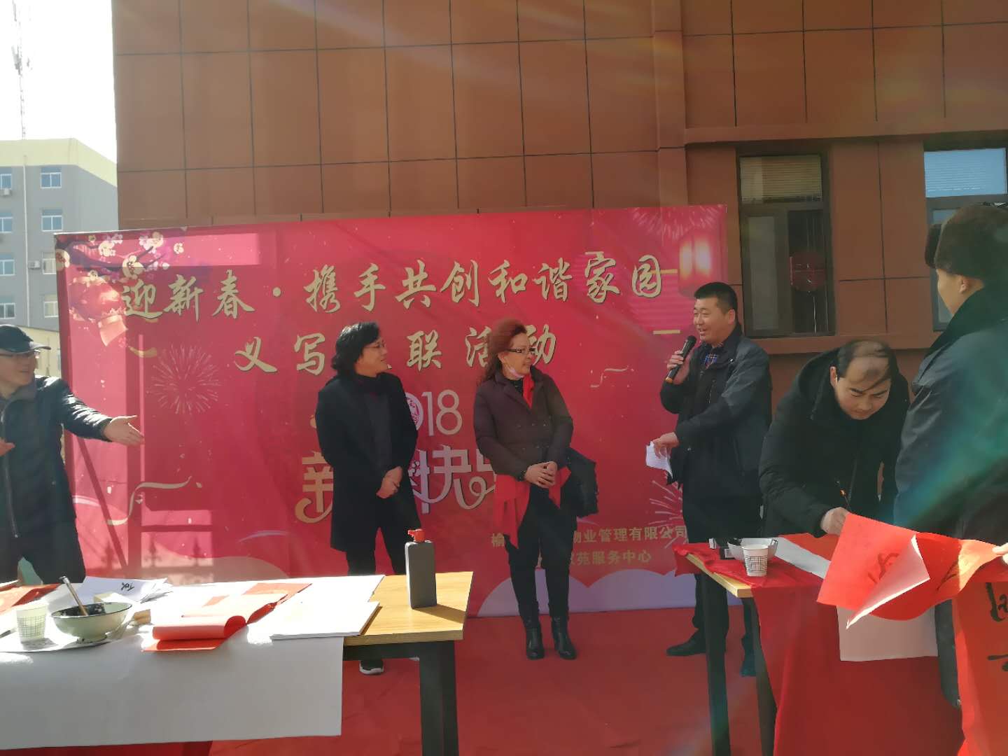 公司為喜迎新春,營造歡樂和諧的春節節日氛圍,同時增進業主的鄰里關系,進一步弘揚傳統文化,榆林市萬邦物業管理有限公司于2018年2月8日舉辦了盛景家苑小區“迎新春·攜手共創和諧家園”義寫春聯活動。