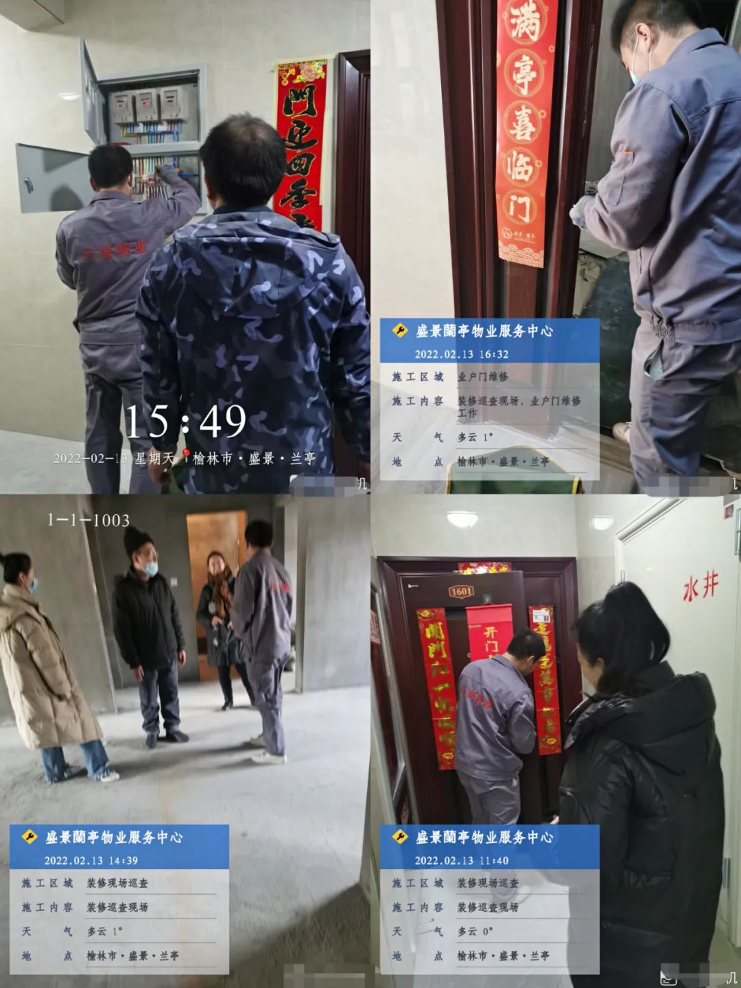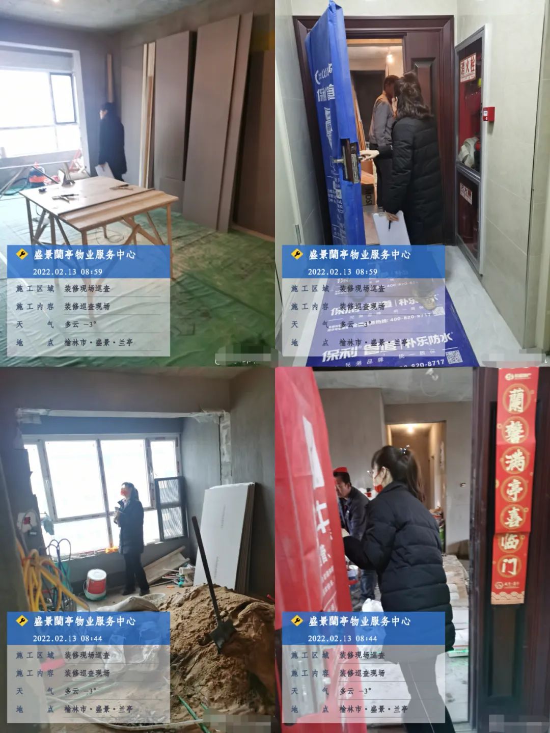 二月萬物復蘇,二月鳥語花香,二月生機盎然, 這個二月,我們始終以誠相待,用心服務!在園區裝修期間,盛景蘭亭服務中心成立了由工程部、客服部、環境部、安保部多部門人員組成的裝修特巡隊,集中對樓棟裝修情況進行巡查、管控,整個小區裝修工作井然有序。